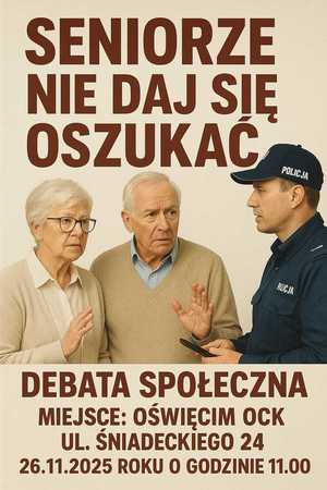 Oświęcim. 26.11.2025 Zaproszenie na debatę społeczną pt. „Seniorze nie daj się oszukać”
