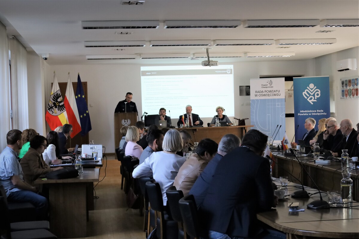 9 marca br. insp. Piotr Dziekanowski Komendant Powiatowy Policji w Oświęcimiu, podczas posiedzenia Komisji Prawa i Porządku Publicznego, zaprezentował analizę stanu bezpieczeństwa w powiecie oświęcimskim za 2025 rok. Przedstawił również priorytety do realizacji przez Policję w 2026 roku, na rzecz utrzymania wysokiego poziomu bezpieczeństwa mieszkańców powiatu oświęcimskiego. W posiedzeniu XX sesji Rady Powiatu, która odbyła się 18 marca br. udział wziął nadkom. Jerzy Wilk I Zastępca Komendanta Powiatowego Policji w Oświęcimiu. Komendant odpowiadał na pytania radnych, związane z planowanymi działaniami Policji na rzecz bezpieczeństwa mieszkańców powiatu oświęcimskiego. Podczas posiedzeń Komendanci podziękowali przedstawicielom Starostwa Powiatowego w Oświęcimiu oraz przedstawicielom Rady Powiatu, za wsparcie działań Policji oraz dużą współodpowiedzialność w zakresie utrzymania wysokiego poziomu bezpieczeństwa mieszkańców powiatu oświęcimskiego. Podczas XX sesji Rady Powiatu sprawozdanie z działalności Komendy Powiatowej Policji w Oświęcimiu za 2025 rok zostało przyjęte przez Radę Powiatu.