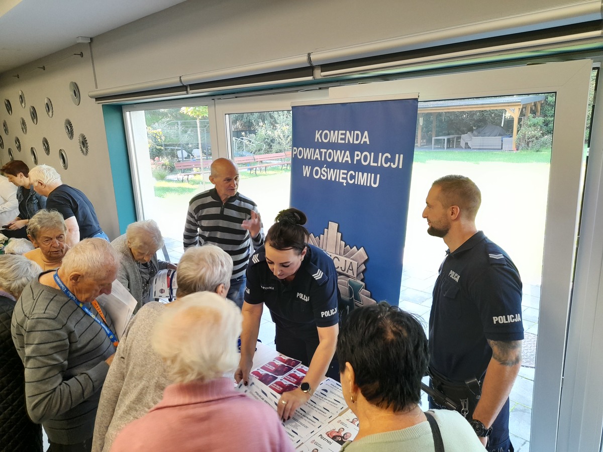 Policjanci z oświęcimskiej komendy Policji, wspólnie z przedstawicielkami Zakładu Ubezpieczeń Społecznych w Oświęcimiu, w ramach „Dnia Seniora”, spotkali się z seniorami uczęszczającymi na zajęcia do Dziennego Domu Pomocy w Oświęcimiu.