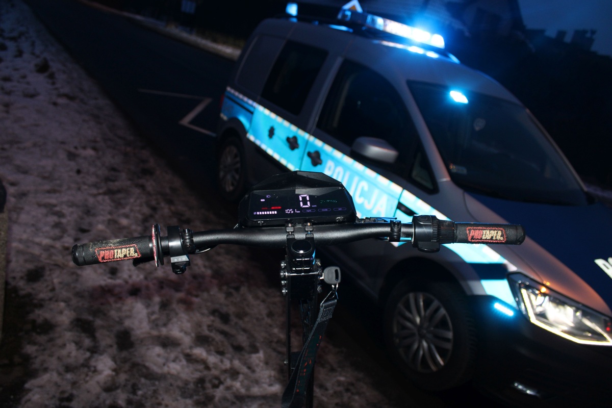 Przypominamy, że jazda hulajnogą elektryczną po jezdni jest zabroniona, jeśli dopuszczalna prędkość na drodze przekracza 30 km/h. Dla własnego bezpieczeństwa podczas jazdy na hulajnodze, rowerem czy na rolkach należy zakładać kask ochronny na głowę.